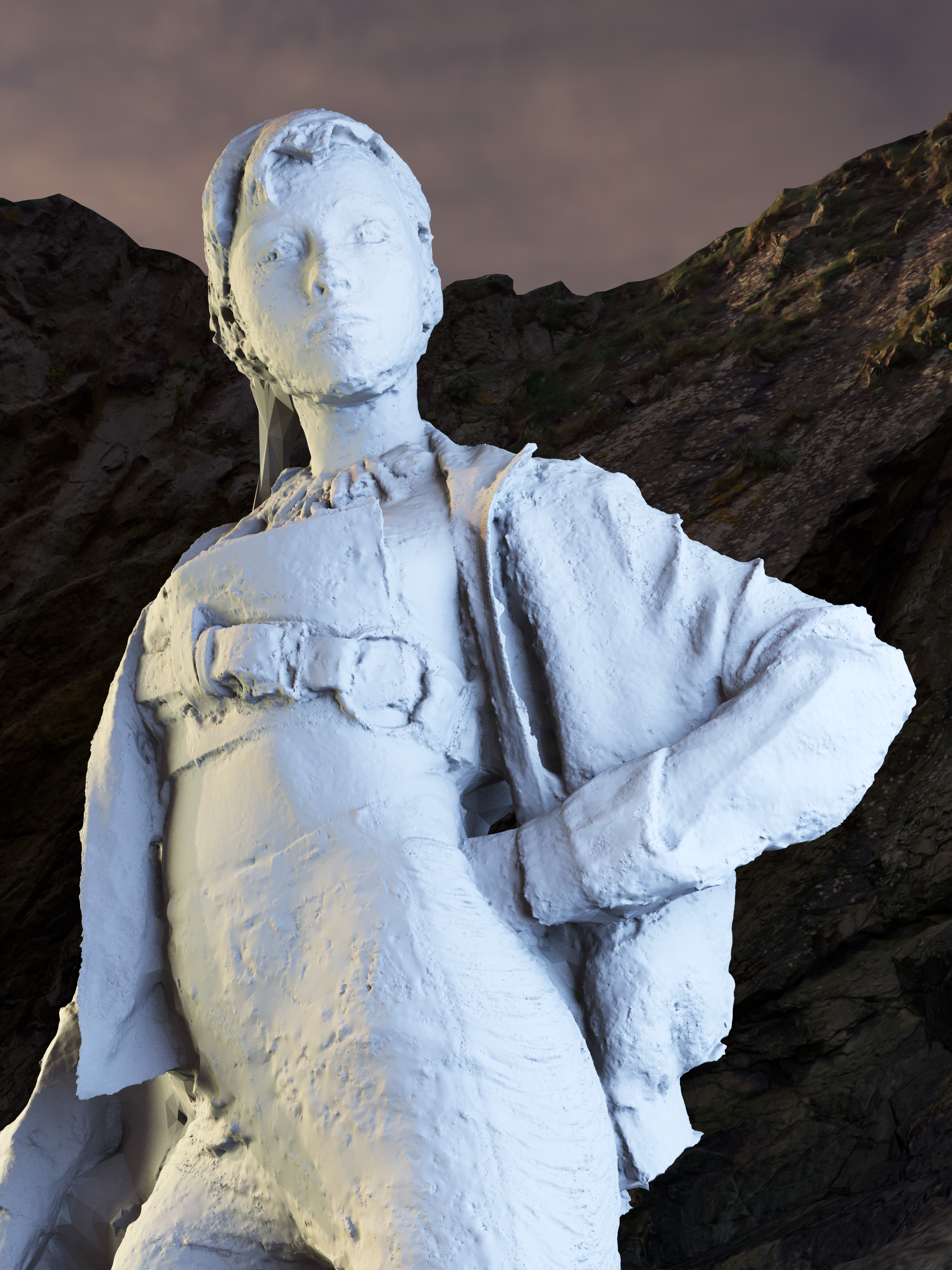 Ville-Les-Bains is typical of a practice combining a 3D-scanned model, moving image and photography to create a fashion editorial. These landscape shots are combined with scans of a model taken in a photo studio at a later date.